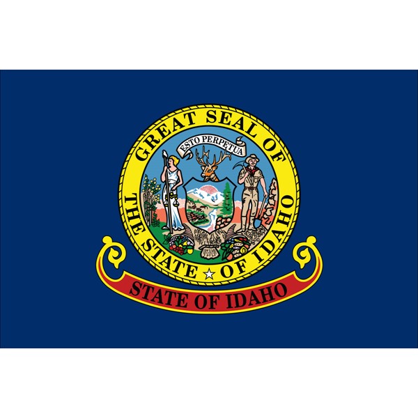 Unsurpassed in beauty and craftsmanship, these Idaho State flags are manufactured to precise specifications. Available in 2x3', 3x5', 4x6', 5x8', 6x10', 8x12',10x15', and 12x18'. Authentic seals and designs are always in correct proportion to the flag size. Our Aniline-Dye process duplicates complex emblems with exacting accuracy in brilliant, fast colors. These flags are expertly crafted using 100% heavyweight, 200-denier nylon bunting specially treated to resist sun and chemical deterioration. America’s #1 choice, these flags are extremely durable and fast drying All outdoor flags are finished with a strong, durable snow-white header and brass grommets.