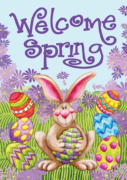 This Welcome Spring house flag is 28x40". Made in the USA using premium colorfast permanent dye creating a colorful design from original artwork. The flag is single revers displaying a mirror image on the back side of the flag. It is made out of a durable machine washable 100% polyester, and is UV and fade resistant.