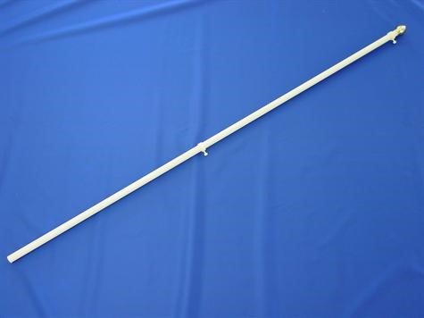 One piece white fiberglass flagpole with gold acorn topper and two nylon pole rings with screws to attach flag to flagpole. This flagpole is 6ft in length and has a 1in diameter.