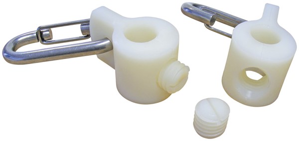These nylon flag fastener clips are sold two per set and come complete with stainless steel spring clips. The halyard is held firmly in place with a positive lock nylon set screw.